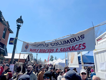 Twenty-three volunteers from the Kitchener Knights joined forces with the Elmira Council to serve up a delicious menu of maple burgers, maple sausage, and maple chips to the crowds at the annual Elmira Maple Syrup Festival—fondly known by locals as “Sap Fest.”